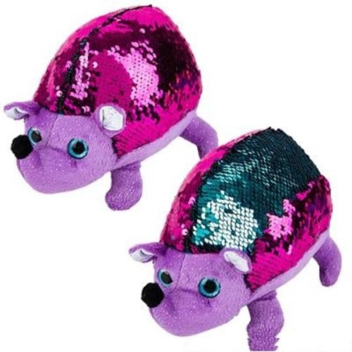 - The hedgehog is 10" in size and showcase pink sequins which when rubbed change color to blue
