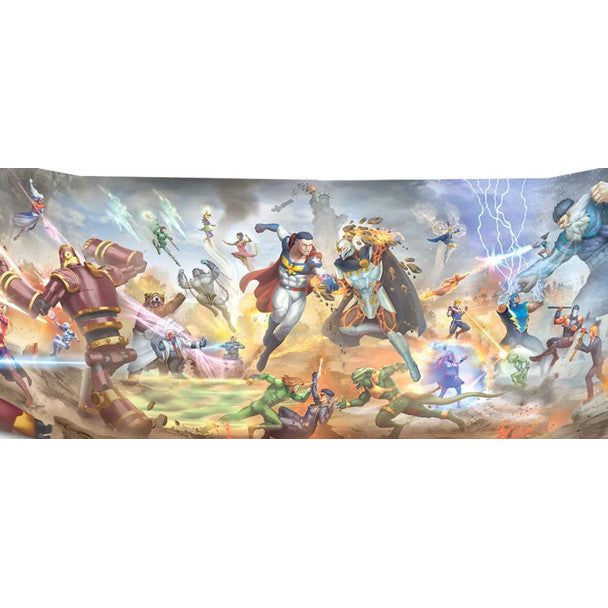 This sturdy, 4-panel reference screen for Game Masters features a one-stop location for important Absolute Power tables, wrapped in a stunning full-colour panoramic battle scene on the front. As a bonus, inside you’ll find the introductory 32-page superhero adventure, “Empire City Loves You”.