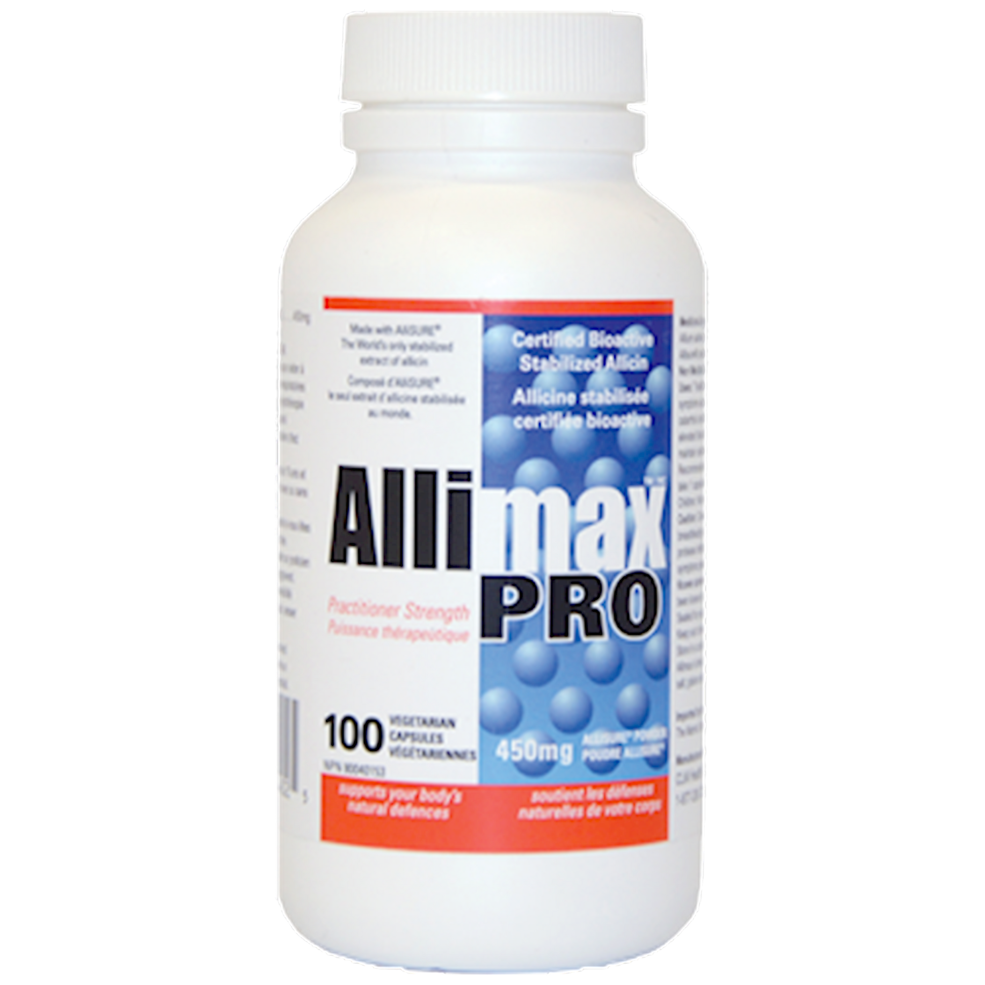 Allimax supports your body's immune system through natural allicin, a natural compound, extacted from fresh, raw garlic using a crushing, filtration and temperature controlled extraction prcess that dissolves pure allicin in water.* Allimax uses only garlic sourced from Spain.