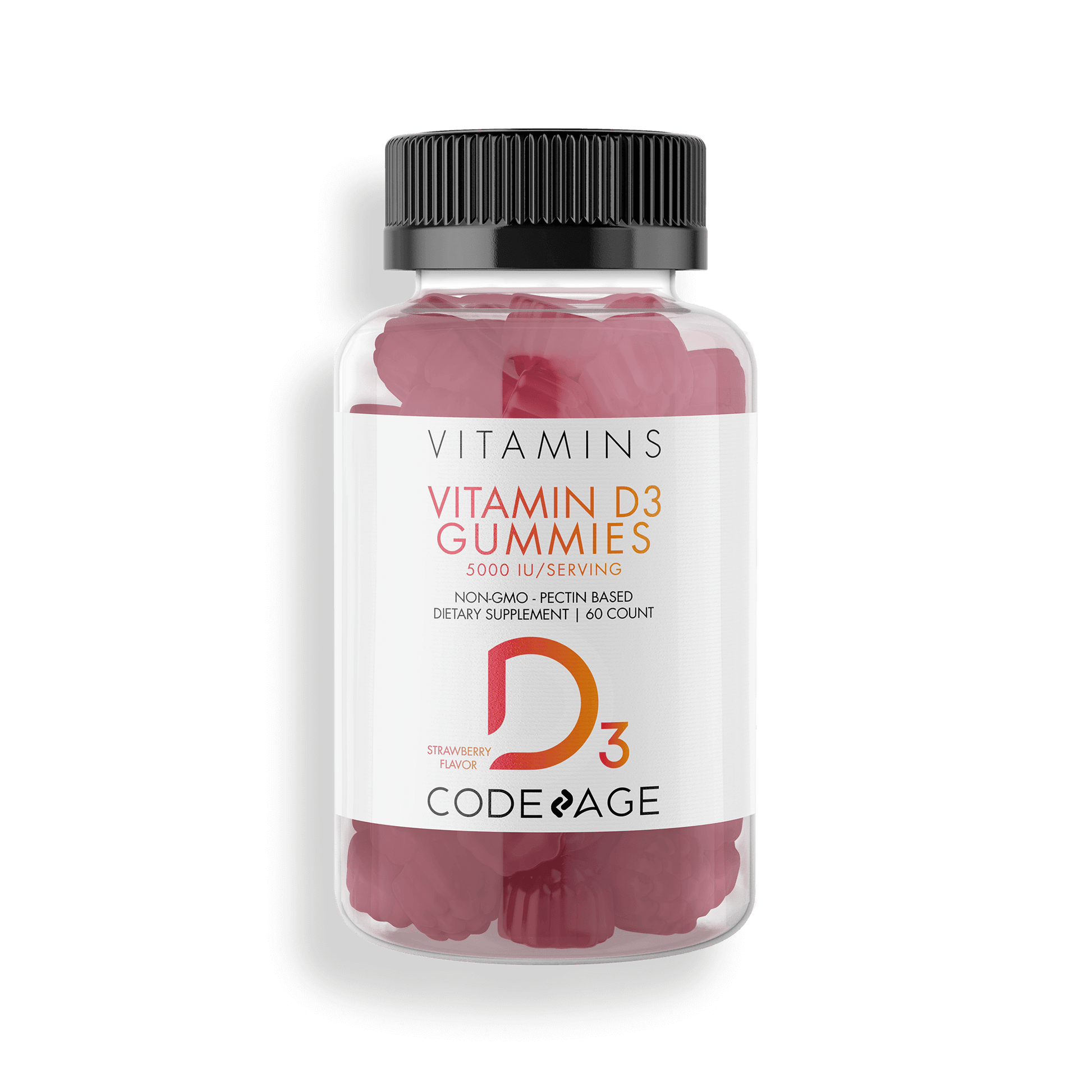 Codeage Vitamin D3 Gummies deliver 125 mcg (5000 IU) of vitamin D per serving, supporting calcium and phosphorus absorption for healthy bones and teeth.* Pectin-based and gelatin-free, enjoy this delicious strawberry flavor in these soft-chew gummies.