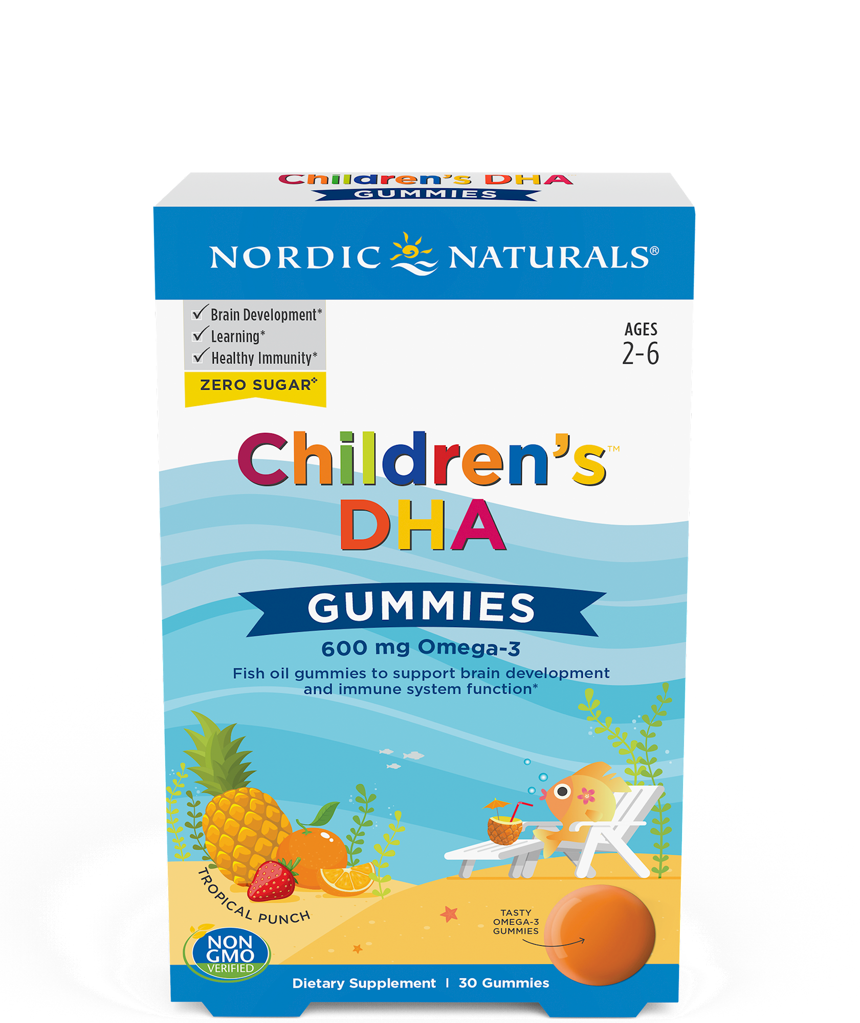 Fish oil gummies to support brain development and immune system function.* Looking for n easy way to get your kids excited about taking their fish oil every day Look no further. Nordic Natural's award winning Children's DHA product line is known as the most kid-friendly source of brain-building omega-3 DHA available, and these delicious zero-sugar Children's DHA Gummies are no exception.* Combining the potency, purity, and freshness of Nordic Naturals omega-3 fish oil with the bright and clean, tropical punch taste of a fun-to-eat gummy means happy kids - and even happier parents. Wild caught. Pure. Friend of the sea certified. Superior Triglyceride form. Every batch of Nordic Naturals fish oils is tested by a third party certified lab for environmental toxins, including heavy metals. All fish oils are in the triglyceride form and surpass the strictest international standards for purity and freshness.