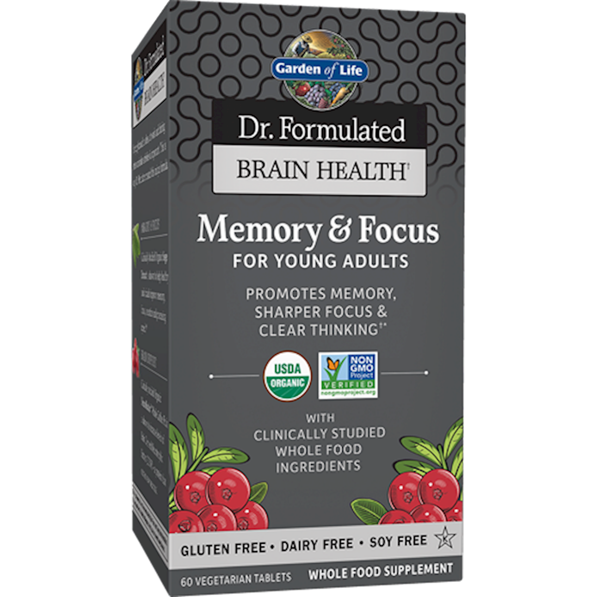 Its a competitive world. On college campuses you compete for grades. In your work, you compete for advancement. In your sport, you compete for placement. When you go through your daily life you compete to be the best you can be. Heres an insight from Dr. David Perlmutter, Board Certified Neurologist, Best-selling Author and a Fellow of the American College of Nutrition: nutrition is the baseline that you can build on to stay in the game and win. Thats why he collaborated on this uniquely powerful, Certified USDA Organic and Non-GMO Project Verified supplement, designed to support brain health in your college and early work years. This formula features Organic NeuroFactor - a Whole Coffee Fruit extract clinically shown to support BDNF (Brain Derived Neurotrophic Factor) production in healthy adults.* BDNF is a protein that is integral to a variety of processes including learning, memory, alertness and mood, as well as controlling body weight and energy metabolism. This formula also features Organic Cognivia - Sage Extract which is the first unique combination of two Sage species: Spanish Sage (Salvia lavandulifolia) and Garden Sage (Salvia officinalis). The active components in Sage Extract have been clinically shown to support memory, improve focus and help support clearer thinking during stressful tasks in young healthy adults. They've added Organic Turmeric and Whole Food Vitamin D3 plus Garden of Life's Organic Brain Health Lipid Blend - a combination of powdered Organic Coconut Oil and Organic Avocado Oilhealthy fats to help fat soluble ingredients to first be absorbed in the gut, and to assist with their assimilation into tissues. All the above clinically studied ingredients and selected organic whole food ingredients are delivered in clean tablets utilizing Garden of Lifes patented Clean Tablet Technologyno chemicals and fillers used as with conventional tablets. All the ingredients Garden of Life use come from whole food. This formula is Certified USDA Organic, Non-GMO Project Verified and Certified Gluten Free. Dr. Formulated Memory & Focus For Young Adults Benefits: Clean, simple, clinically studied whole food ingredients 600mg of Organic Cognivia Sage Extract 100mg of Organic NeuroFactor Whole Coffee Fruit Certified USDA Organic & Non-GMO Project Verified Vegetarian, Gluten Free, Dairy Free, Soy Free