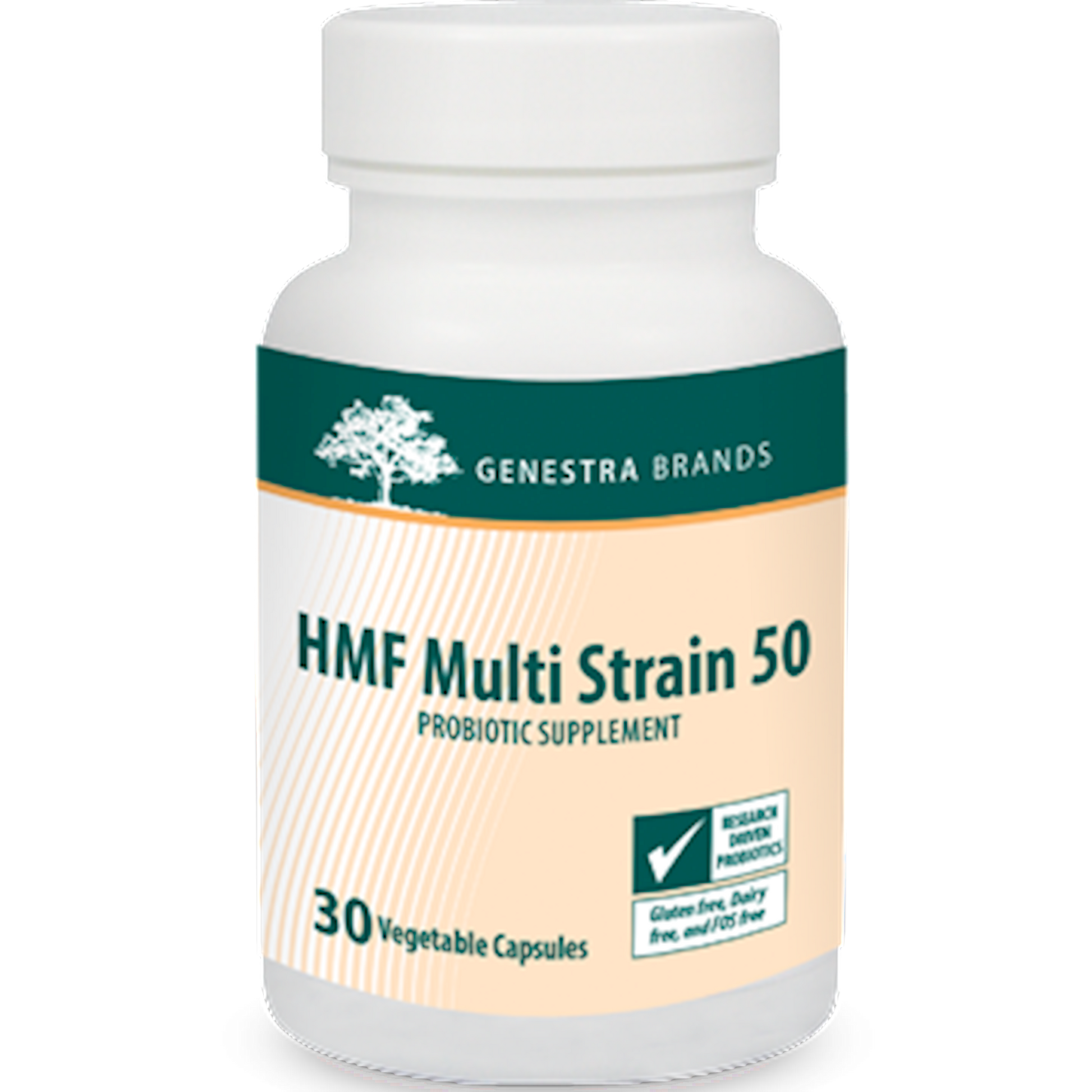 15-strain probiotic combination* Helps to reduce intestinal transit time* Helps support a healthy immune system* May enhance aspects of cellular immunity* Supports GI and immune health, bowel motility and a healthy microflora* Supports a favorable gut flora* HMF Multi Strain 50 capsules include 50 billion CFU from a combination of 15 probiotic strains. These research-driven strains were selected based on their ability to support both gastrointestinal and immune health. HMF Multi Strain 50s probiotic consortium contains proprietary human-sourced strains, and includes 8 strains of Lactobacilli and 6 strains of Bifidobacteria. Saccharomyces cerevisiae subsp. boulardii (CNCM-I-1079) live yeast cells are also provided for additional microflora support. In a recent placebo-controlled clinical trial, daily supplementation with HN019 for two weeks significantly reduced intestinal transit time; following supplementation, intestinal transit time was decreased by approximately 30%, which was associated with an approximate 35.8% reduction in occasional constipation. BL-04 and NCFM support year-round immune health and may enhance certain aspects of cellular immunity, such as cytokine-dependent cellular signaling. Two recent, placebo-controlled human clinical trials have found that these strains provide support for seasonal immune health in healthy participants. As well, supplementation with a combination of CUL-60, CUL-21, CUL-31 and CUL-20 may help to enhance certain aspects of cellular immunity in healthy individuals.*