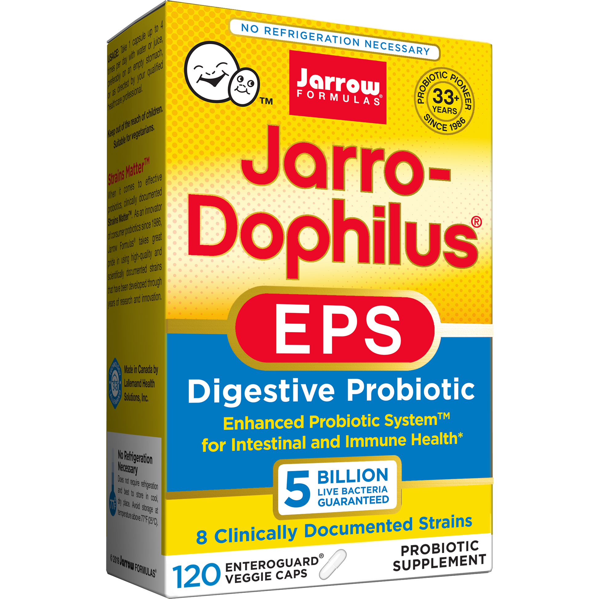 Jarro-Dophilus EPS is a Stable-Dophilus probiotic due to its shelf life stability at room temperature and its enteric coating delivery system, which protects the beneficial probiotic strains while in transit through the stomachs acidic environment.* The delivery system ensures that a maximum number of viable cells are delivered into the intestinal tract, where they can fully exert their beneficial effects.* The strains in Jarro-Dophilus EPS are selected from the following 4 genera: Lactobacillus, Bifidobacterium, Lactococcus and Pediococcus. Probiotic strains such as B. longum BB536, L. rhamnosus R0011 and L. helveticus R0052 are well characterized and have been shown to have the ability to interact, via multiple mechanisms of action, with the intestinal tract and the microbial ecosystem within it.* These strains have been clinically shown to have a positive influence on the composition of the intestinal microflora, promote intestinal health and support immune response.* EnteroGuard ensures the maximum survival of probiotic bacteria to the small intestines, and hence enhances their effectiveness.
