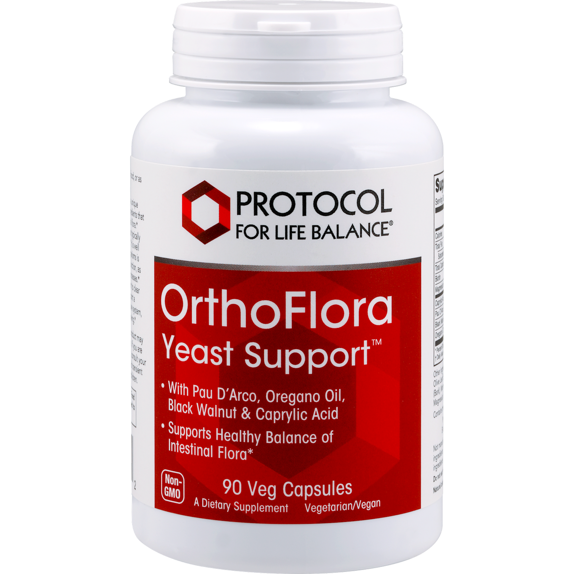 OrthoFlora Yeast Support is a unique formula with nutritional and traditional herbal ingredients that may help to support a healthy balance of intestinal flora.* Candida albicans is a naturally occurring yeast that typically resides in the gut as part of the normal gut flora.* It is well known that a proper composition of intestinal organisms is critical to healthy digestive and immune system function, as well as for the support of proper detoxification processes.* Although OrthoFlora Yeast Support is not meant to clear Candida albicans from the gut, it can help to support a healthy balance of intestinal flora, a healthy immune system, proper detoxification, and overall digestive well-being.* With Pau DArco, Oregano Oil, Black Walnut & Caprylic Acid Supports Healthy Balance of Intestinal Flora*