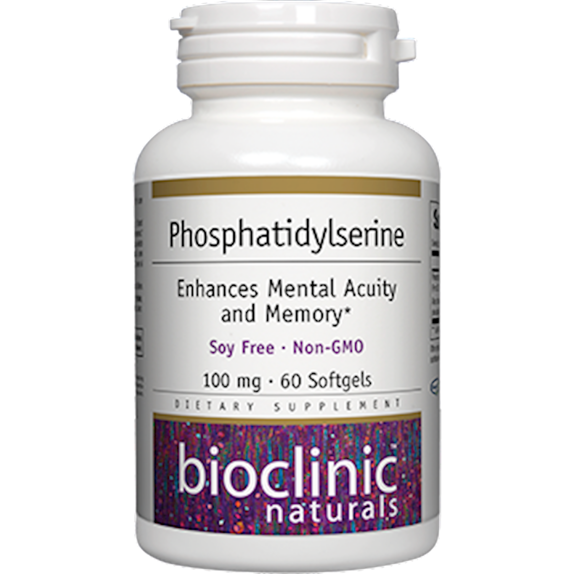 Each capsule provides 100 mg phophatidylserine, allowing for easy and clinically relevant dosing Also contains naturally occurring phosphatidylcholine (PC), phosphatidylinositol (PI), and phosphatidylethanolamine (PE), all of which contribute to cellular and lipid bilayer function* Lipid base provides superior bioavailability Phosphatidylserine is from a non-genetically modified (non-GMO), 100% soy free, and animal-free source (derived from sunflower oil)