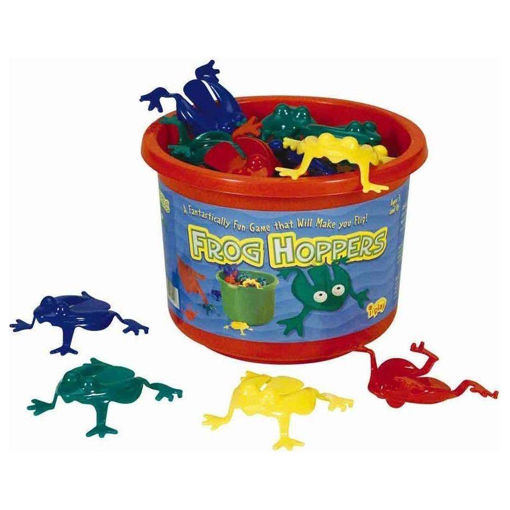 Jump with joy leaping and flipping your colorful little frogs into their bucket pond. Play the Viking Toys' Frog Hoppers Game and try to toss your frog pieces with flipping them with your fingers into the bucket. The more - the better! Let your friends to race you with the plastic jumping-flipping little frogs! Excellent toy from Educational Toys Planet to practice motor skills and play exciting action games at the same time! The award-winning Frog Hoppers Game includes 16 frogs in 4 vibrant colors - green, red, yellow, and blue. This flipping frogs playset comes with the neat multi-functional storage bucket.