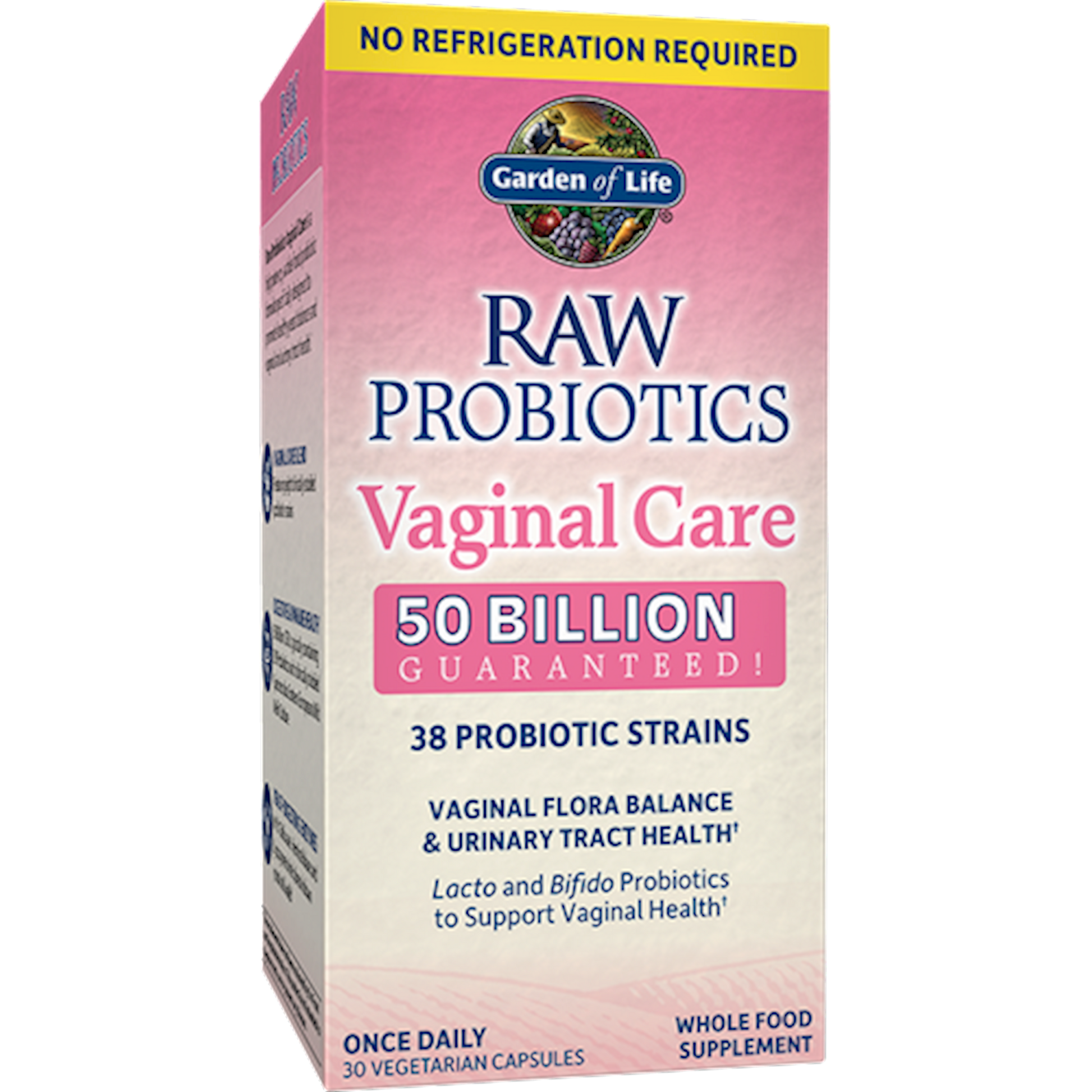 RAW Probiotics is a unique line of high-potency, RAW, whole food probiotics that are age- and gender-specific. Unlike isolated strains of probiotics, RAW Probiotics offers all the benefits of a true food probiotic with a record-setting 30+ probiotic strains. So, its not just isolated bacteria in a pill; RAW Probiotics is a whole-food probiotic that emulates eating fermented food. Made with mainly Bulgarian yogurt concentrate, Wild European kefir grains and scobies, and concentrated clinically studied probiotics strains, RAW Probiotics is created below 40 F and 30% humidity so that what you see on the label is what you get in the bottle. Garden of Life RAW Probiotics Vaginal Care helps support yeast balance, vaginal and urinary tract health.* Supporting a healthy bacterial balance helps support vaginal and urinary tract health.* Garden of Life RAW Probiotics Vaginal Care is a high-potency, RAW, whole food probiotic formula containing a proprietary Vaginal Care Blend featuring eight probiotic strains providing meaningful vaginal and urinary tract health support.* RAW means Garden of Life's probiotics are uncooked, untreated, unadulterated, with no binders or fillers and no carriers. What Garden of Life promise on the label is what you get50 billion live probiotic cultures in a convenient once-daily capsule. Garden of Life's shelf Stable, patent-pending desiccant-lined bottle technology ensures your probiotics Arrive Alive! Raw Probiotics Vaginal Care Benefits: Is a once-daily servingin one small, easy-to-swallow capsule Has 38 RAW probiotic strains supporting flora diversity as found in nature Features proprietary Vaginal Care Blend to help support yeast balance, vaginal and urinary tract health* Helps provides a unique Yeast-Digesting Enzyme Blend to help break down yeast cell walls* Arrive Alive! Potency Promise No Binders, Fillers or Carriers RAW Probiotics Vaginal Carea high-potency, RAW, whole food ultimate probiotic with Vaginal Care Blend to help support yeast balance, vaginal and urinary tract health.*