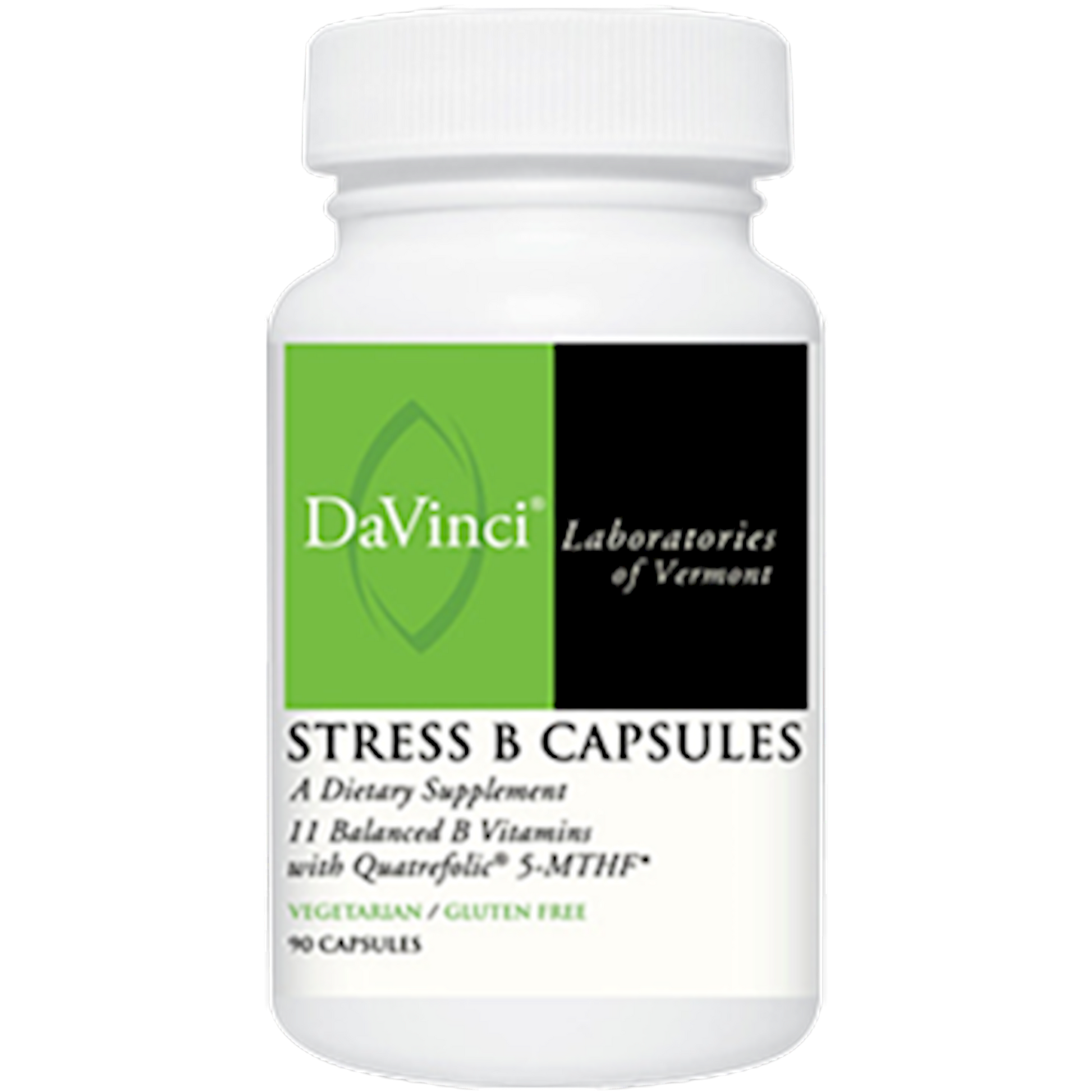 Stress B contains Thiamin (B1), Riboflavin (B2), Niacin (B3 asniacinimide), Vitamin B6, Folic Acid, Vitamin B12, Biotin, Pantothenic Acid (B5), PABA, Choline and Inositol to support proper nerve function and relaxation.* The Vitamin B complex in Stress B helps manage stress, support immune system function and helps reduce irritability.* B vitamins are important to proper circulatory function, for maintaining blood pressure within normal ranges, and preserving healthy cholesterol levels already in the normal range and proper homocysteine levels.* Available in a vegetarian, gluten free, and easy to swallow capsule.
