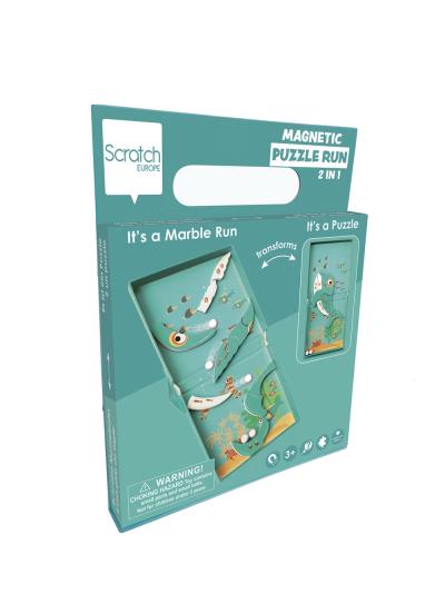 Transform the fun puzzle into a challenging marble run and back! The 2-in-1 magnetic puzzle run offers you various play options. All components are magnetic, so you can put them anywhere on the fun background. Would you like one long marble run, or a marble run that splits? You can have whatever you like! Let your creativity and imagination run wild.